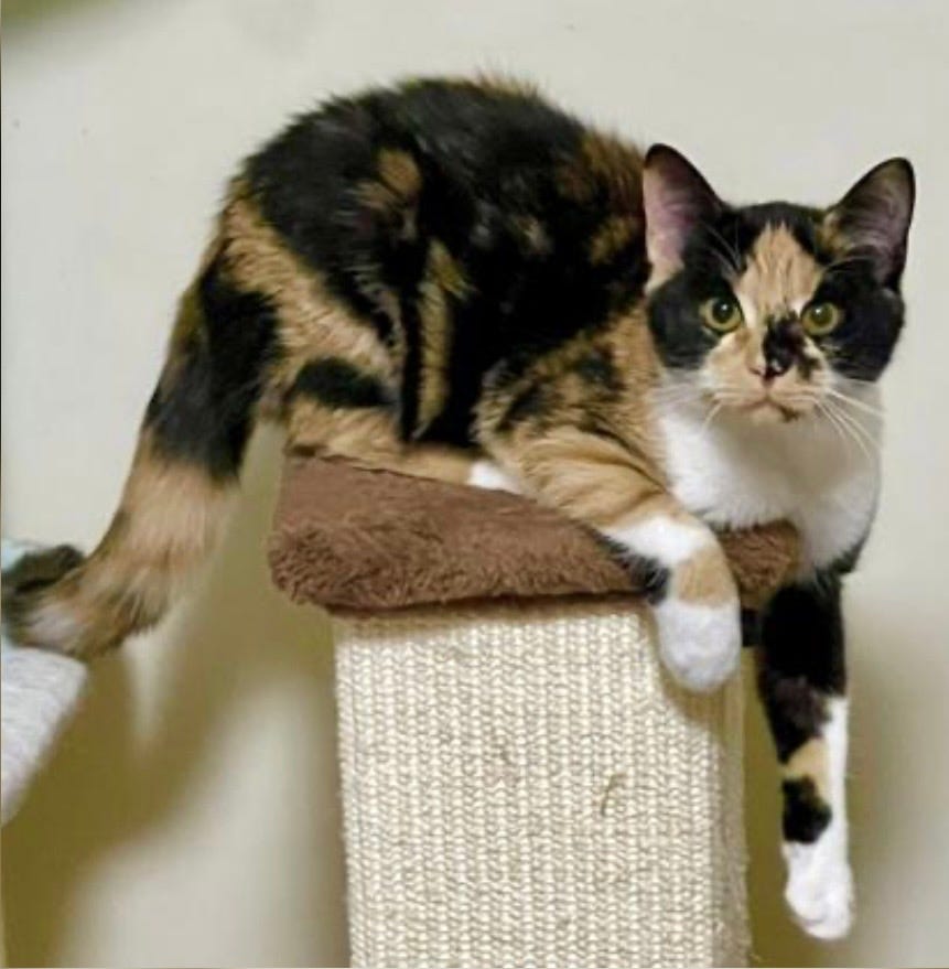When the staff brought Poppy out, she ran, climbed to the top of the cat tree, and refused to come down. It was clear she was overwhelmed and not choosing me in that moment.